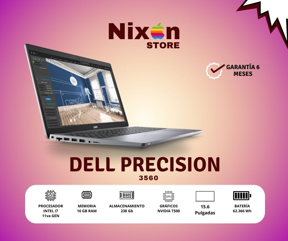 La Dell Precision 3560 es una workstation móvil profesional diseñada para diseño, ingeniería, arquitectura y software CAD. Equipada con un procesador Intel Core i7-1165G7 de 11ª generación, ofrece excelente rendimiento para multitarea, modelado 2D/3D, renderizado ligero y trabajos técnicos.